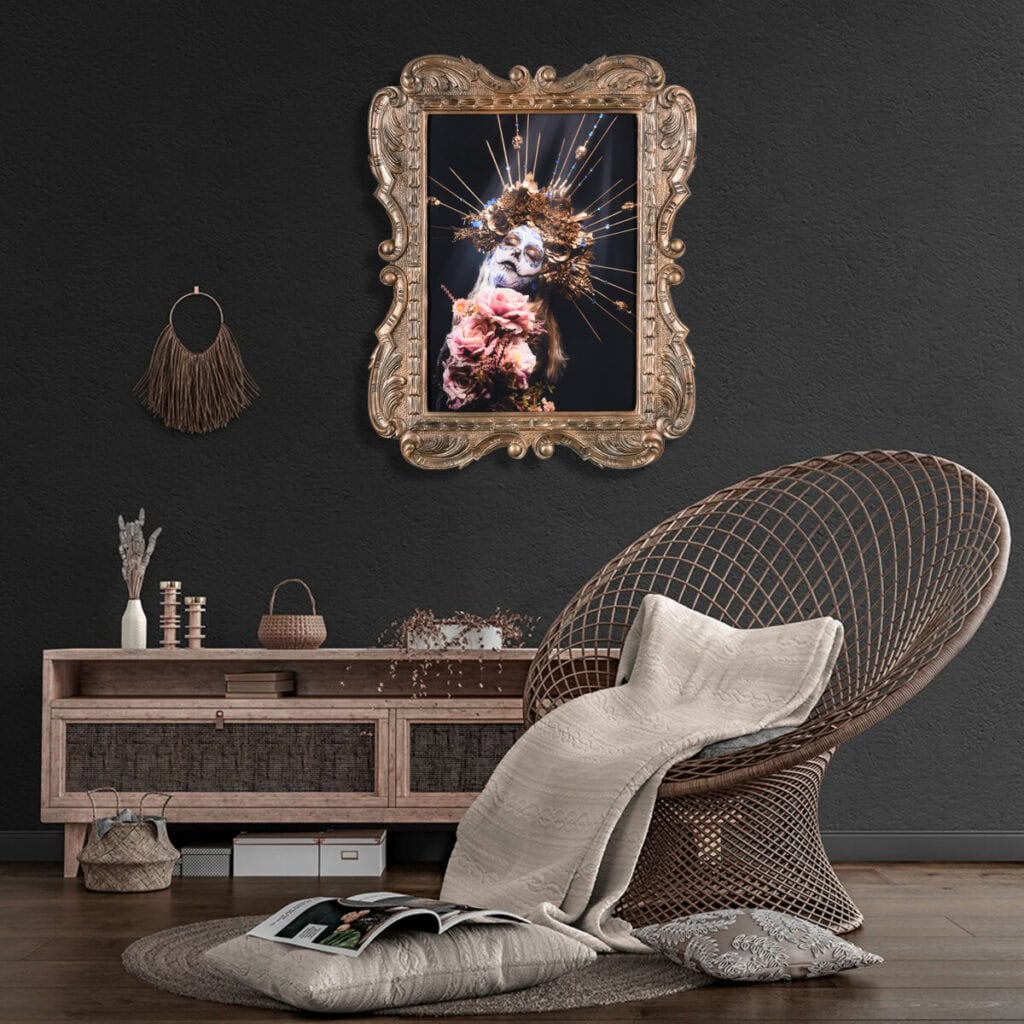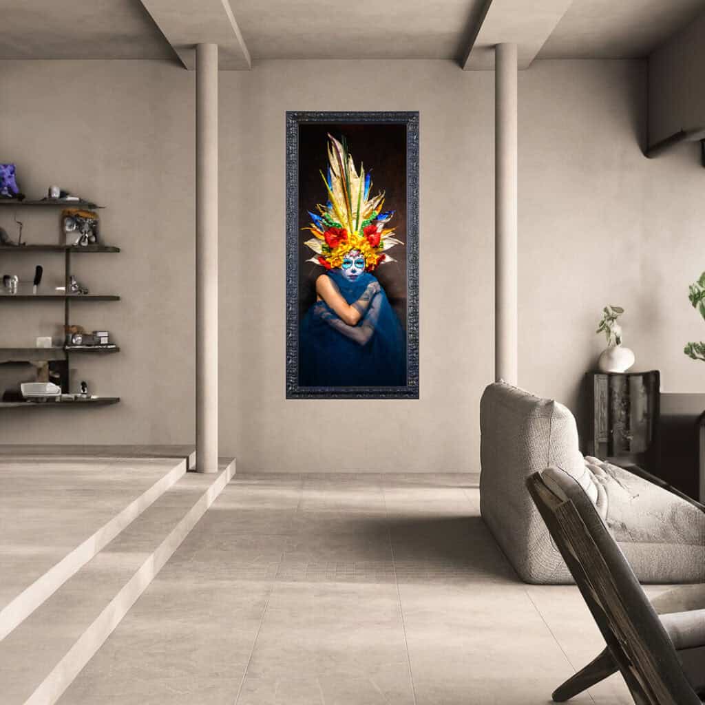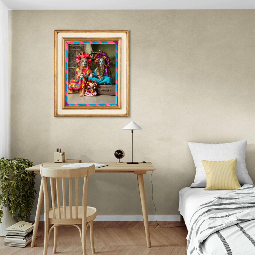 Cristina, artiste mexicaine, décore les cadres de la Collection 2 et y apporte la force de ses racines : couleurs et éléments authentiques racontent cette collection et restituent la puissance des traditions.